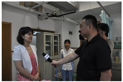 正在醫(yī)院進(jìn)行采訪的中央電視臺(tái)記者獲知完達(dá)山為五胞胎家庭解決寶寶們?nèi)甑目诩Z,現(xiàn)場采訪了王榮霞。